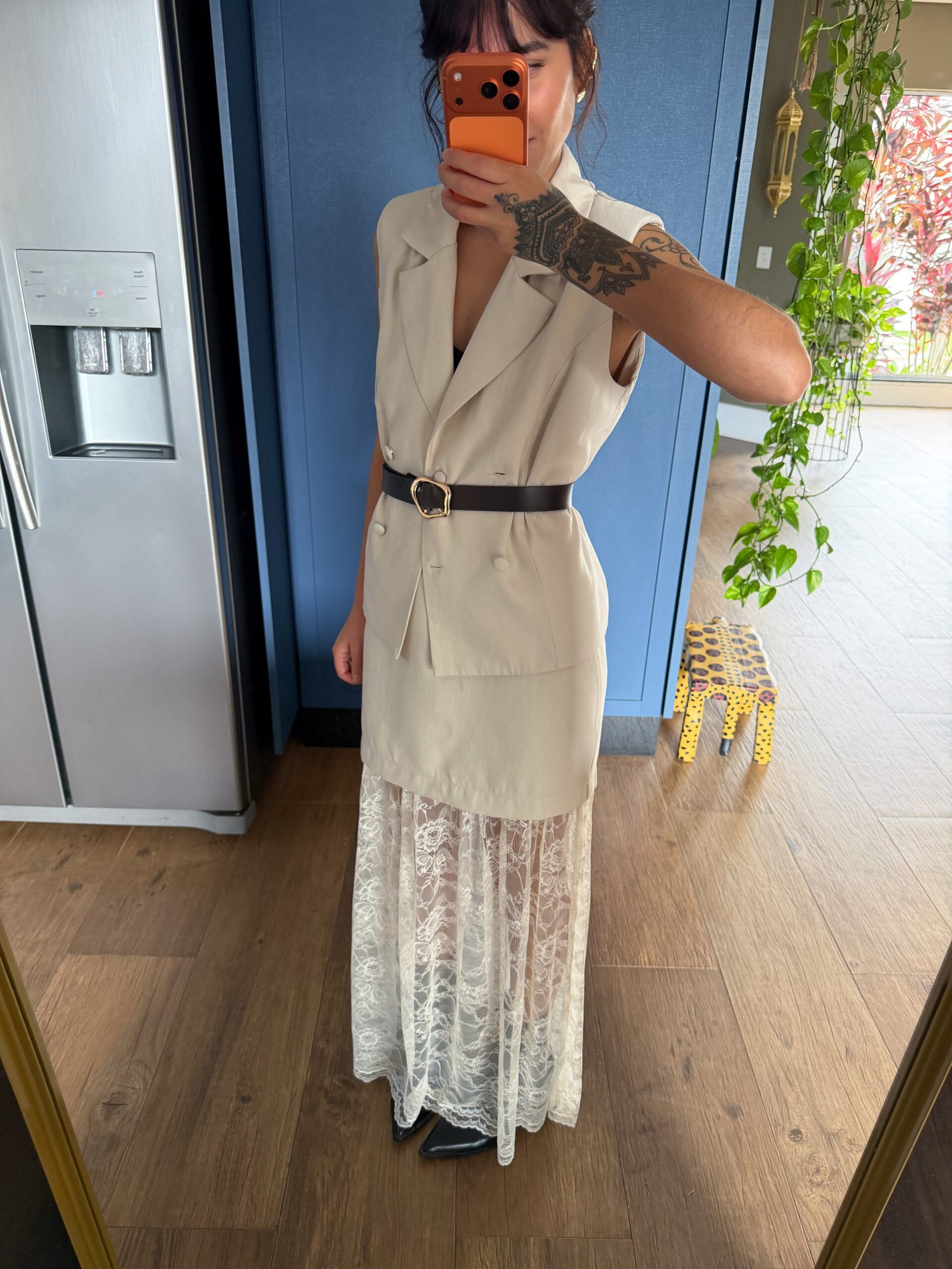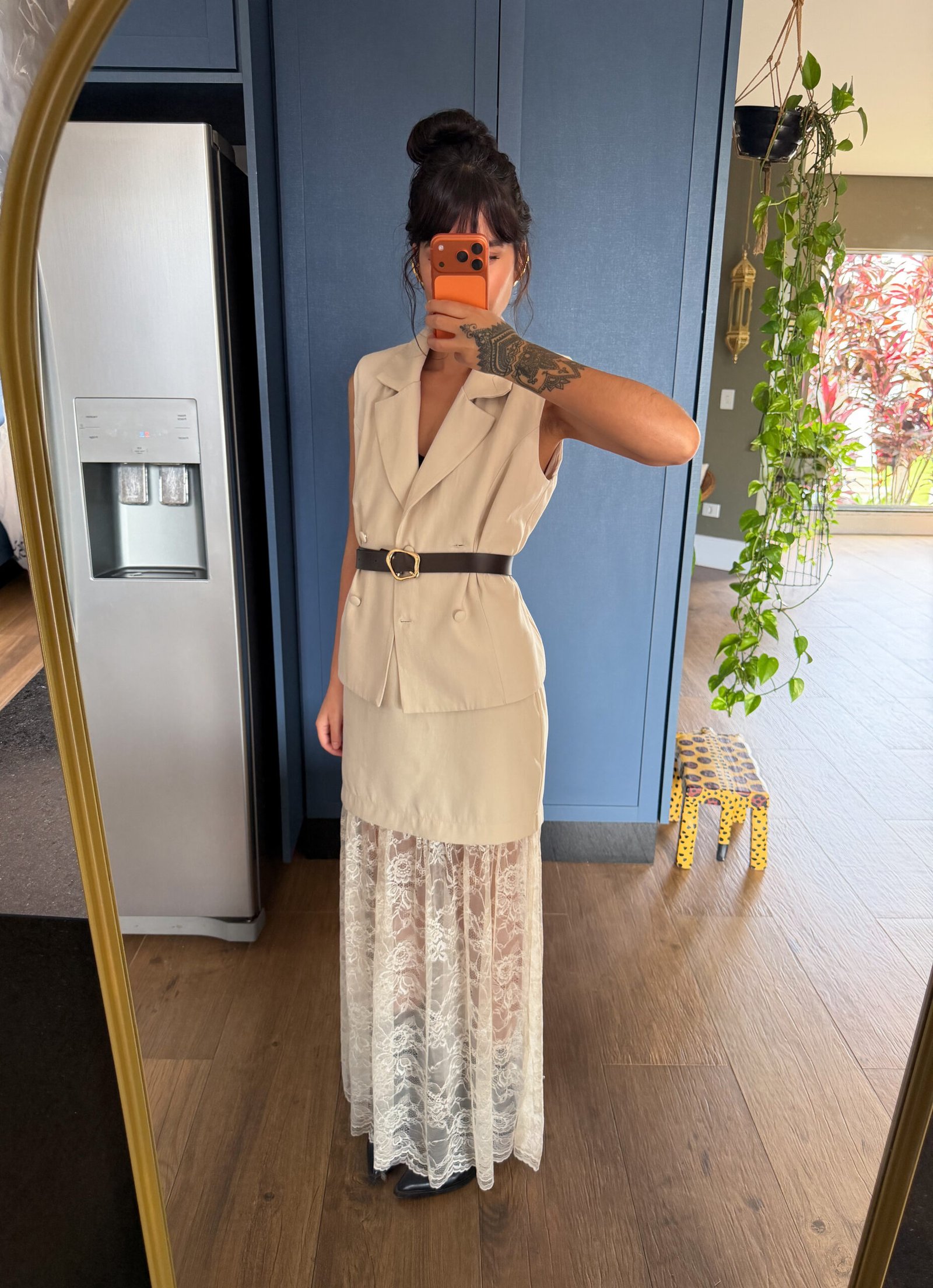 E pra fechar com charme: detalhe em renda na barra da saia. ✨